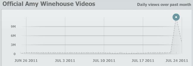 La repentina muerta de la cantante Amy Winehouse a los 27 años de edad ha sido todo un impacto. Debido a este trágico suceso muchos han recurrido a la plataforma de vídeos de Google para revivir la música de esta artista. Así, YouTube ha multiplicado el número de visitas de sus canciones más populares.
